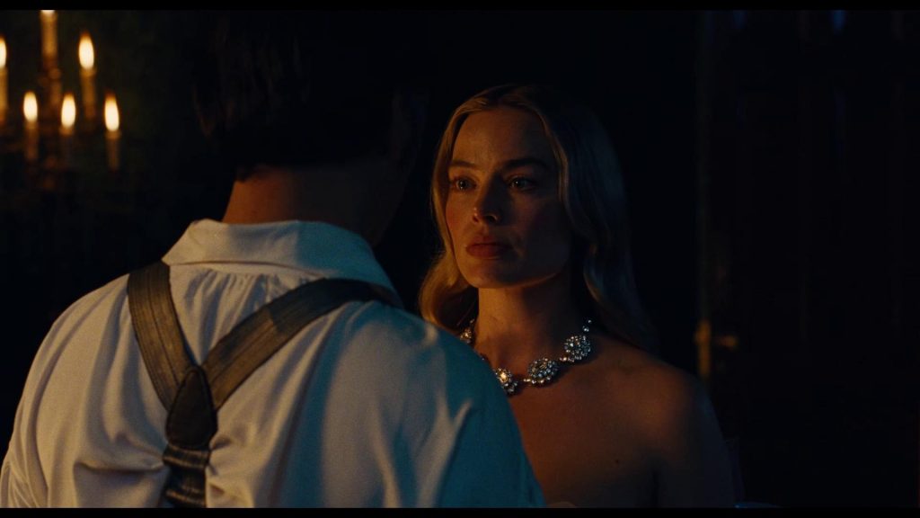 Margot Robbie como Catherine está espectacular, llena de glamour y vulnerabilidad; su presencia a través de múltiples primeros planos y un vestuario que luce muy bien, domina la pantalla con mucho magnetismo. Sin embargo, a pesar de la química con Jacob Elordi, a este le he visto menos fuerza en su interpretación.