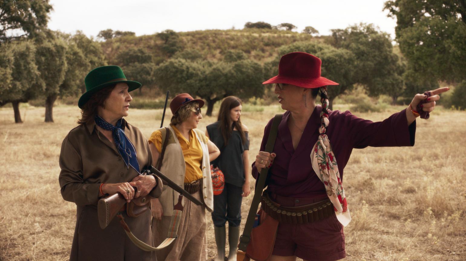 La negativa de Rosa hace aflorar viejas rencillas, envidias y frustraciones acumuladas durante años. Lo que comienza como una jornada aparentemente festiva en el campo —que culmina con una salida de caza— se convierte poco a poco en un escenario de tensión creciente. A esa atmósfera contribuye también un inquietante dron que sobrevuela y sigue a las protagonistas, añadiendo un elemento de vigilancia y amenaza que acompaña el deterioro de la relación entre ellas.