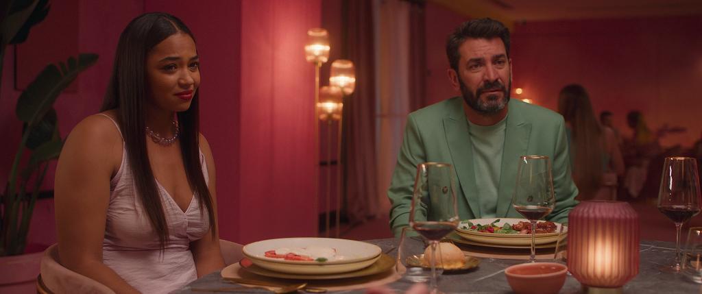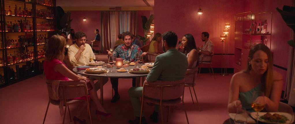 Resaltar que visualmente es muy llamativa, puesto que es una comedia negra, pero todas las historias tienen una paleta de colores definida, que la identifica. Muy, pero muy colorida, vistoso y provocativo. Alguna historia muy pop-art, con colores y decorados que parecen salidos de una peli de Wes Anderson, o de una cadena de hamburgueserías estadounidense de los años 50, un detalle anecdótico es que la camisa de Vito Sanz tiene exactamente el mismo estampado que el papel pintado que recubre las paredes del baño del restaurante de lujo donde está celebrando una comida con sus amigos. Detalle anecdótico, que también le hace entre ridículo y epatante.